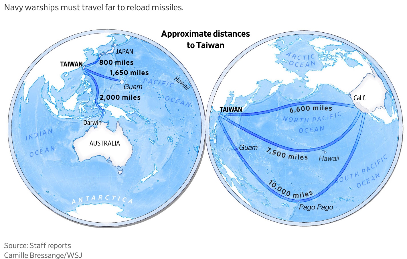 From the South China Sea, Darwin is a roughly 4½-day journey under normal sailing conditions, compared with a roughly three-week journey to the U.S. West Coast.