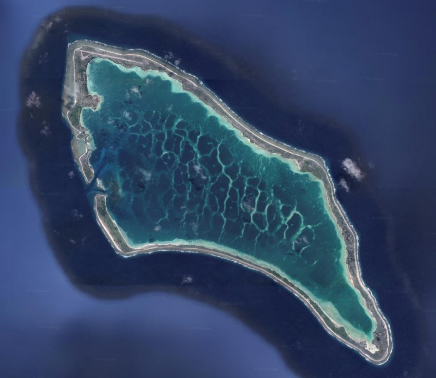 You WWII history geeks will remember this was one of the staging areas for our progress through the Gilbert Islands (Tarawa etc). The US was nice enough to build an airbase there. You can see it clearly.
