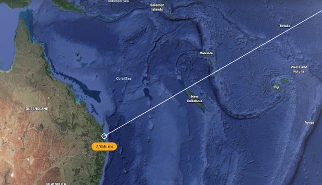That isn't why it is such an important spot. Here's the terminal end of the great circle route from San Diego to Australia.